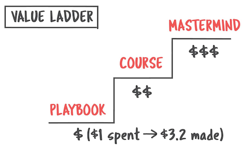 In fact, if you look at the value ladder from bonus #1, we’re going to create a playbook as your frontend offer that sets up your course as the next logical thing your customers should buy.