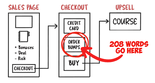 When we were building our playbook funnel, we realized it was different from a “traditional” Internet marketing funnel. Specifically, there was one point in the funnel where 208 words increased our average order value (AOV) by 34%. It was crazy.